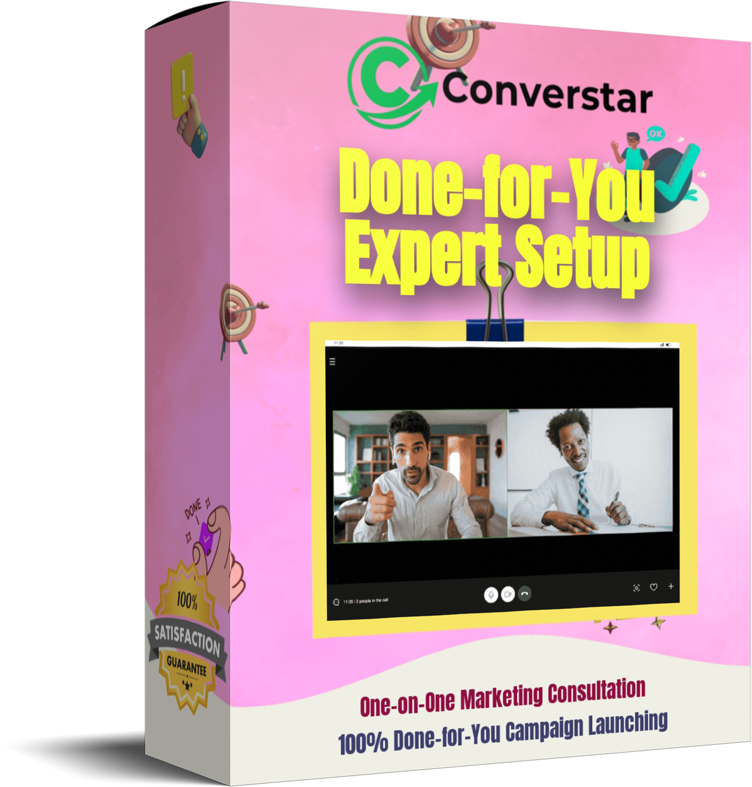A: You’ll receive immediate access to your Converstar dashboard where you can begin creating campaigns. You’ll also receive instructions for scheduling your Done-For-You setup session.